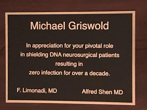 Michael Griswold and his pivotal role in protecting neurosurgical patients from complications for over a decade. He worked tirelessly shielding patients during long hours of complex operations and many lives are saved thanks to him.